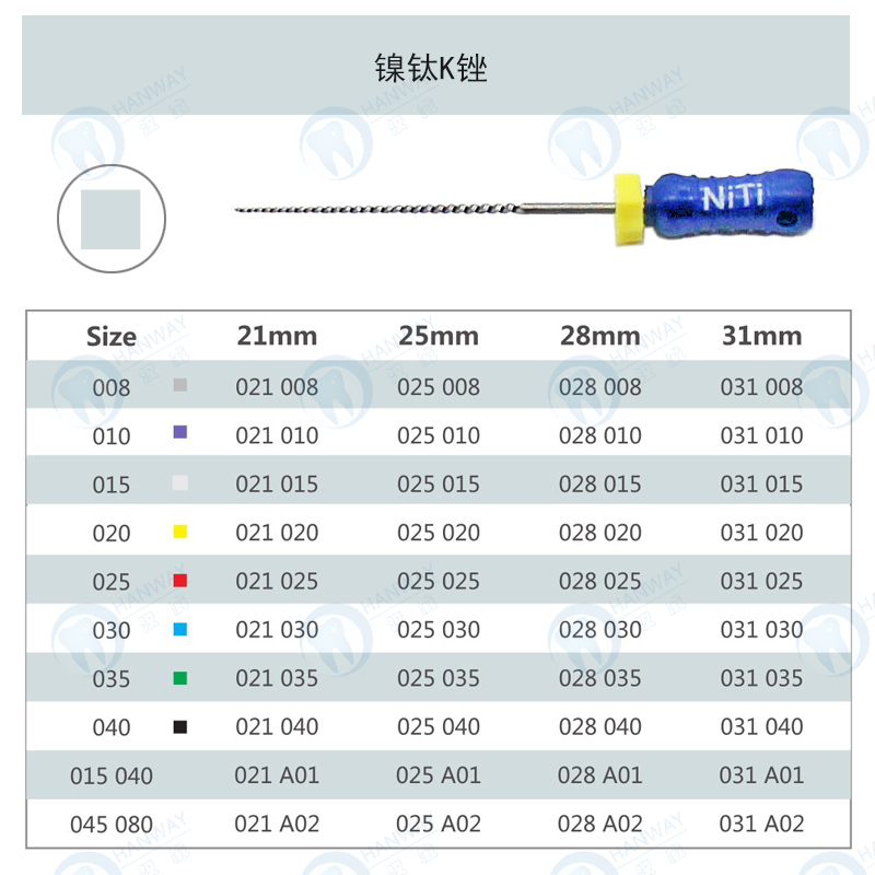 1.镍钛合金材质,具有耐磨性、超弹性等优异特性,普遍适合复杂根管的手动预备